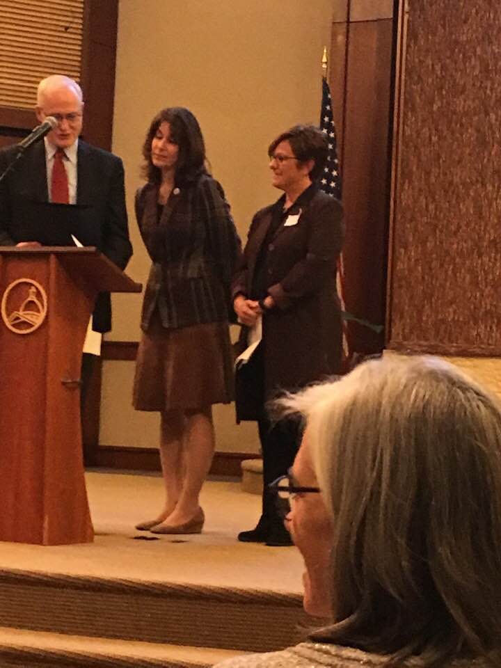 At yesterday’s tribute to the illustrious Jay R. Kaufman, I joined State Rep. Michelle Ciccolo (Jay’s able and excellent successor) and Deborah Johnson Brown (representing terrific State Senator Cindy Friedman) in presenting the honoree with a rather rare document — a Resolution, honoring his achievements, enacted jointly by the Massachusetts State Senate and the Massachusetts House of Representatives. The lovely head of hair in the foreground belongs to the distinguished Congresswoman Katherine Clark.