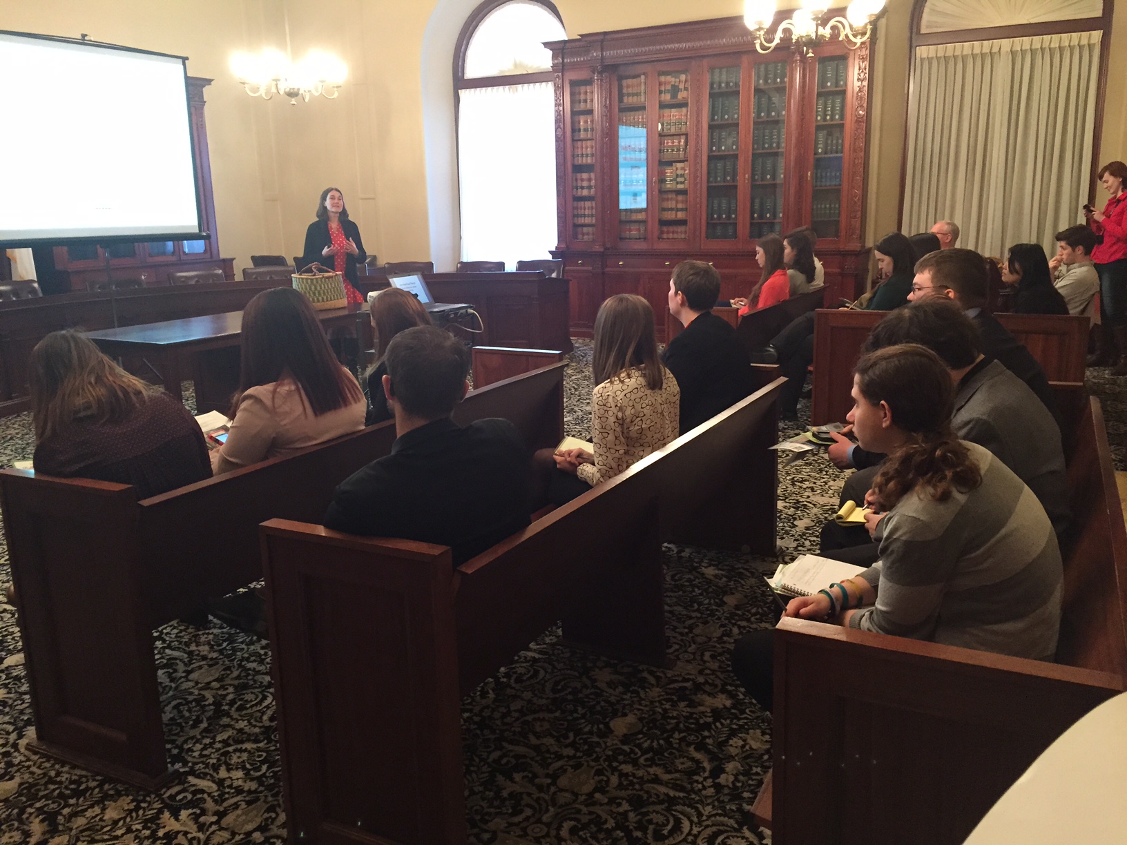 Sonia DeMarta, co-founder of the Farmers Market in Lexington and Healthy Eating consultant at Whole Foods in Bedford, got a State House audience to dig in on the topic of healthy eating.