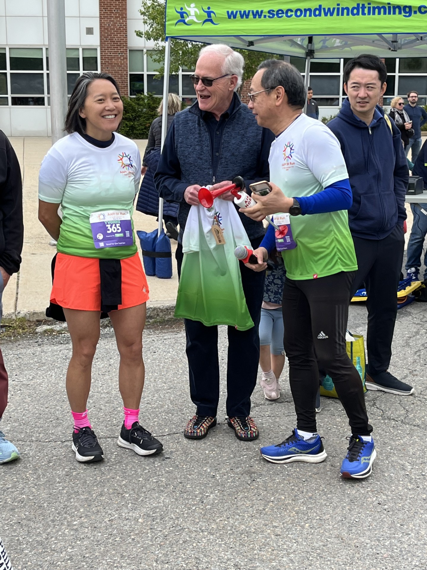 Pleased to have offered opening remarks this past weekend at the start of the annual 5K race sponsored by CAAL, the Chinese American Association of Lexington. Participation was high. Sustainability was the theme. I sounded the starting horn. Happy to have received advice on proper technique from former Economic Development Secretary Yvonne Hao and CAAL executive Hua Wang.