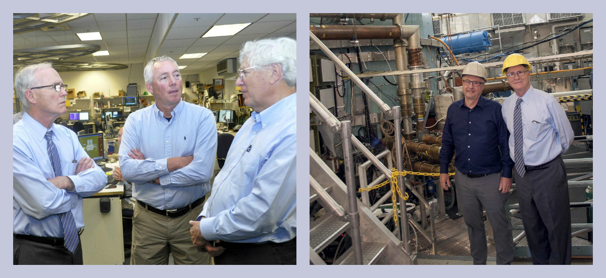 The engineering wizards at the Massachusetts Institute of Technology want to reduce fossil fuel use and lay the groundwork for safe nuclear fusion. The science of getting this right is tricky but, if anyone can do it, the talent at MIT can. On the left, I meet with MIT Plasma Science and Fusion Center Director Dennis Whyte (center) and inventor and entrepreneur Reiner Beeuwkes of Concord. On the right, with “Wiyj Alcator C-Mod Project” Head Earl Marmar. Photos thanks to Paul Rivenberg.